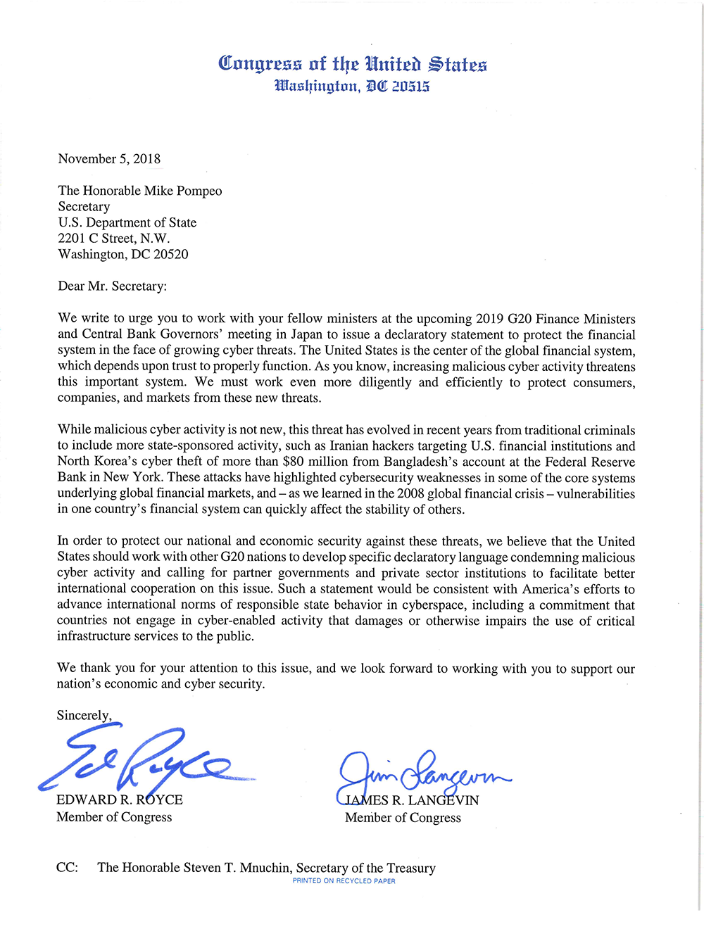 This report is the result of that project and offers a vision for how the international community could better protect the financial system against cyber threats. The recommendations are designed to inform the deliberations among the G20, the G7, relevant standard-setting bodies as well as the Annual Meeting of the World Economic Forum and the Munich Security Conference.